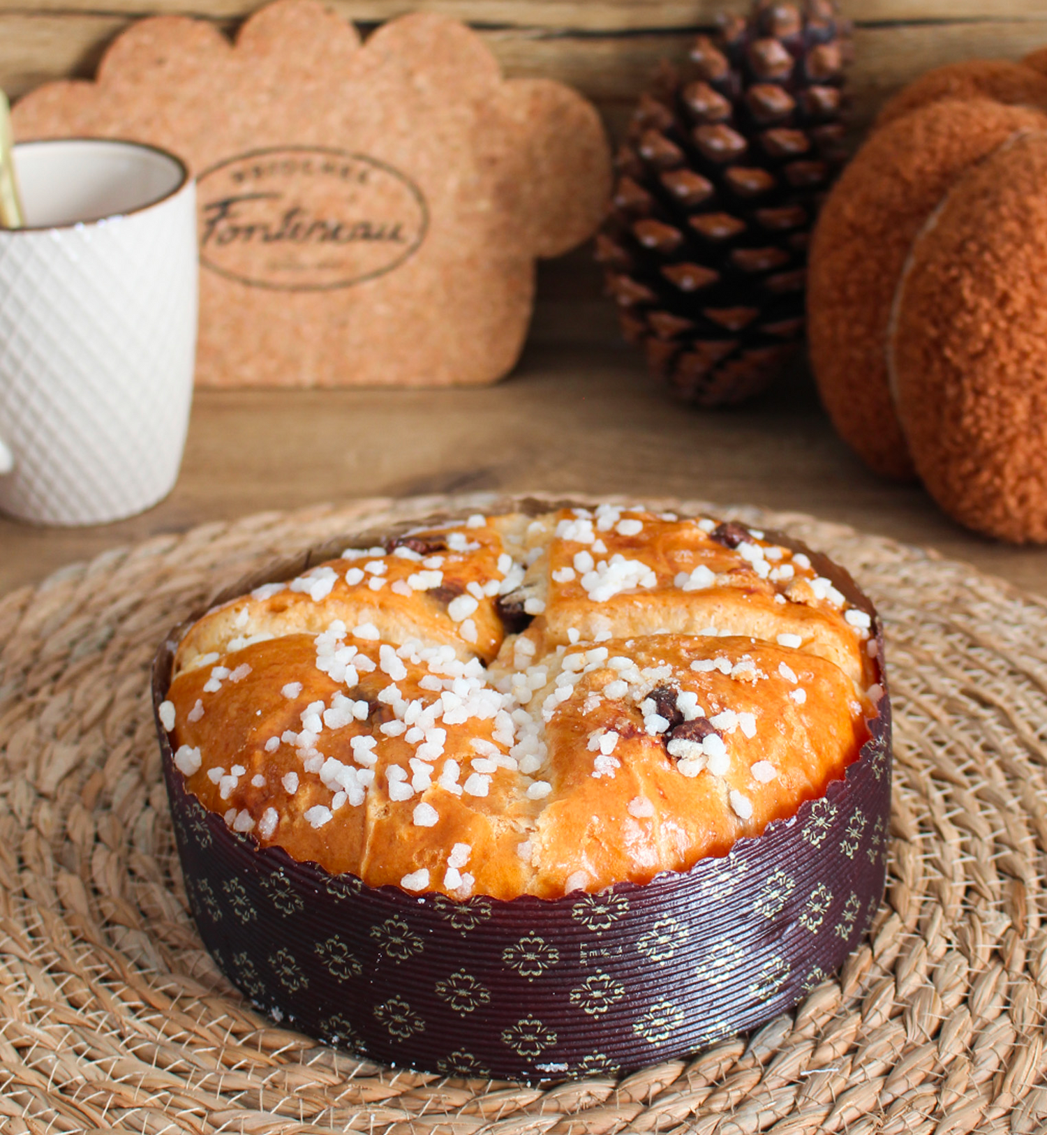 Profitez de 15% de réduction sur notre brioche gourmande aux 3 chocolats et saveur noisette.